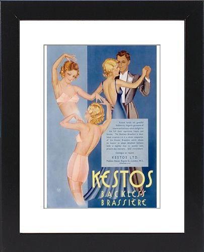14x11 Framed Print, Black Satin Frame White Digital Mat. , Advertisement for the Kestos Backless Brassiere 1935. Advertisement for the Kestos Backless Brassiere. Chosen by Mary Evans. 14x11 wooden frame with digital mat and RA4 print. Finished back including brown backing paper, hanging bracket and corner bumpers. This item is shipped from our American lab.Customer Reviews