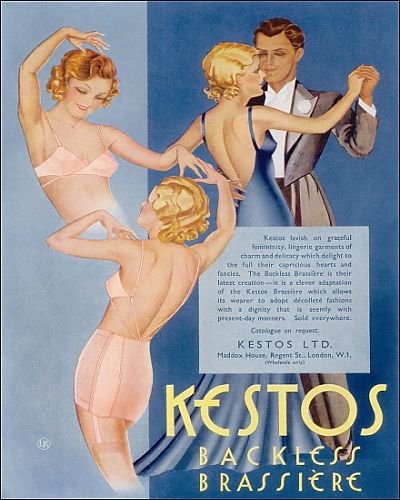 - Image Description: Advertisement for the Kestos Backless Brassiere